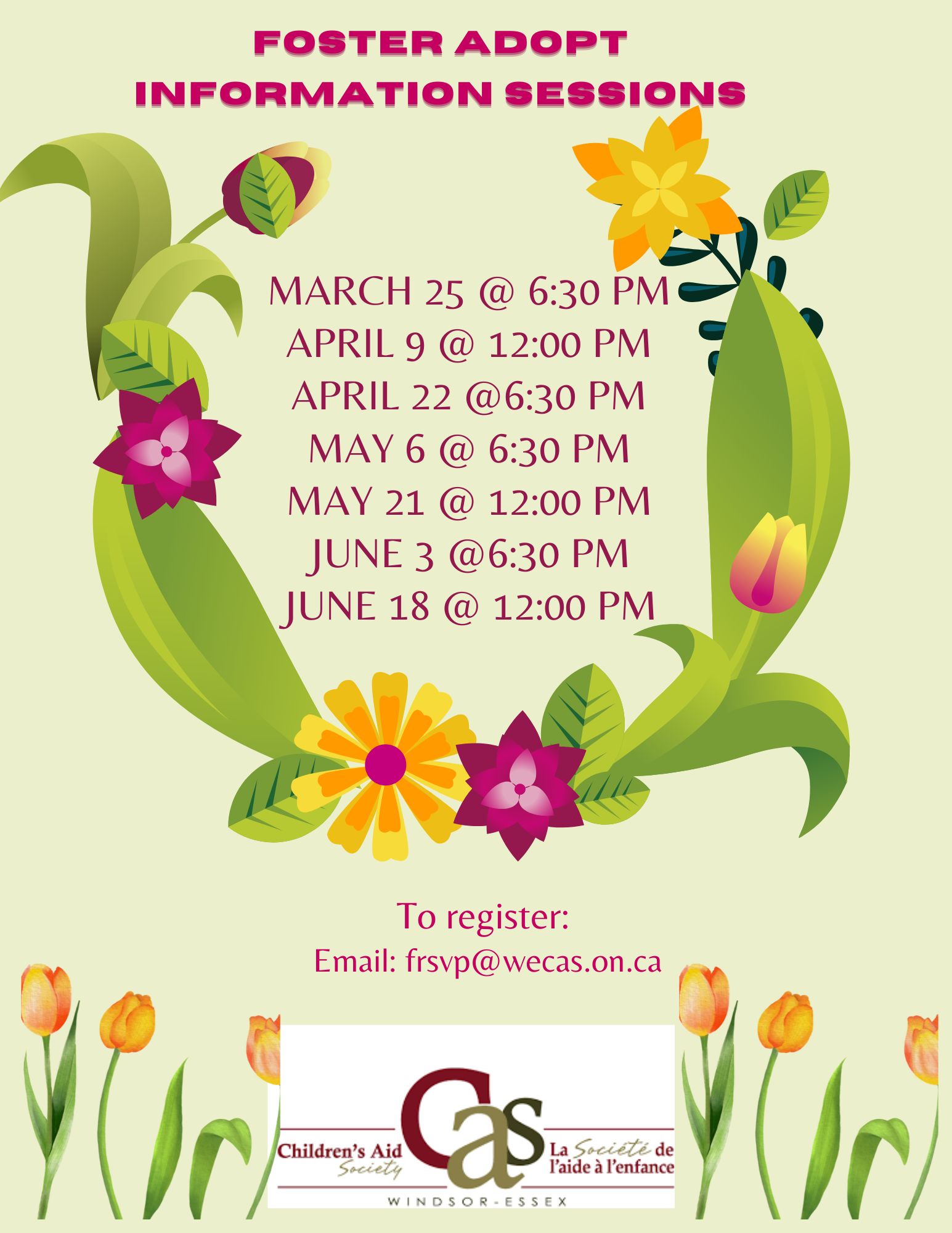 - Attend an information session and email frsvp@wecas.on.ca to register and receive link for session.