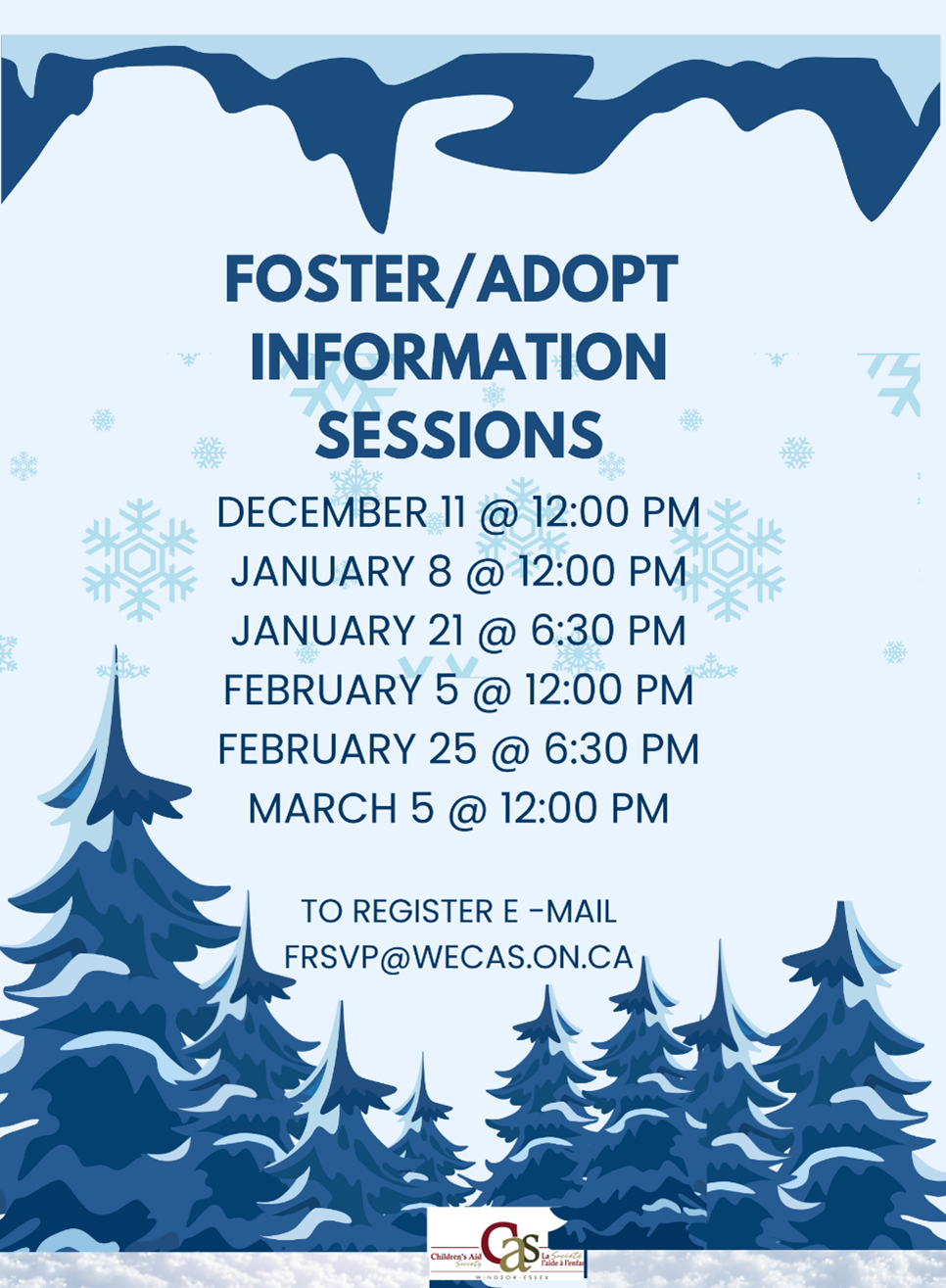 - Attend an information session and email frsvp@wecas.on.ca to register and receive link for session.